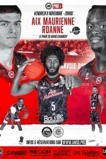 Le vendredi 08 novembre 2024 à 20H, Aix Maurienne Savoie Basket affronte la Chorale de Roanne au Phare de Chambéry, devant plus de 4500 spectateurs !