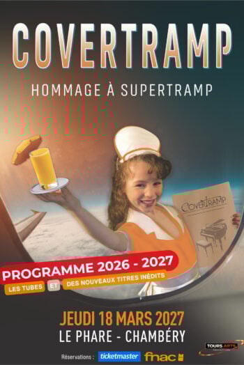 Après une tournée triomphale en 2024/2025, COVERTRAMP, considéré comme le meilleur hommage planétaire à SUPERTRAMP et adoubé par Roger Hodgson (cofondateur et voix emblématique du groupe), est de retour avec une toute nouvelle production pleine de surprises.